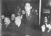Nguyễn A'i Quốc là đại biểu duy nhất của nhân dân Đông Dương tham dự Đại hội lần thứ XVIII của Đảng Xã hội Pháp tại thành phố Tua (Tours). Tại Đại hội này Anh đã cùng với những nhà hoạt động chính trị và vǎn hoá nổi tiếng của Pháp như: Macxen Casanh (Marcel Cachin), Pôn Vayǎng Cutưyariê (Paul Vaillant Couturier)... bảo vệ chủ nghĩa Mác, chống lại những người cơ hội. Trên diễn đàn của Đại hội, Nguyễn A'i Quốc đã tố cáo tội ác của thực dân Pháp ở Đông Dương, kêu gọi giai cấp công nhân và nhân dân Pháp ủng hộ cuộc đấu tranh của nhân dân Việt Nam và nhân dân các thuộc địa khác. Người đề nghị: "Đảng xã hội cần phải hoạt động một cách thiết thực để ủng hộ những người bản xứ bị áp bức ... Đảng phải tuyên truyền chủ nghĩa xã hội trong tất cả các nước thuộc địa. Chúng tôi thấyrằng việc Đảng xã hội gia nhập Quốc tế thứ ba có nghĩa là Đảng hứa một cách cụ thể là từ nay Đảng sẽ đánh giá đúng tầm quan trọng của vấn đề thuộc địa". Cũng tại Đại hội này Người đã bỏ phiếu tán thành Quốc tế cộng sản, trở thành một trong những người sáng lập Đảng Cộng sản Pháp. Sau Đại hội Tua, người cộng sản Việt Nam đầu tiên Nguyễn A'i Quốc bắt tay ngay vào hoạt động nhằm đoàn kết, tổ chức và lãnh đạo nhân dân các thuộc địa đấu tranh chống áp bức, giải phóng dân tộc, giải phóng xã hội và giải phóng con người. |